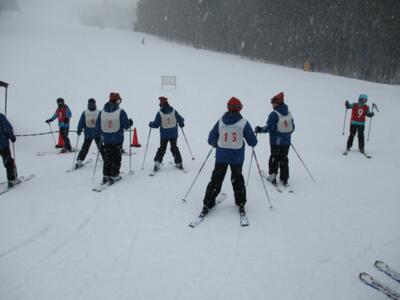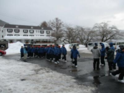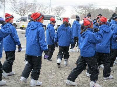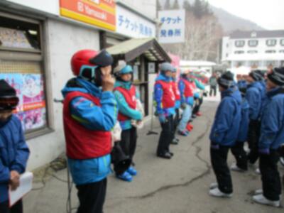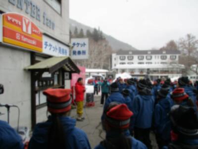 開講式後、雪が舞う中、初日のレッスン頑張りました。