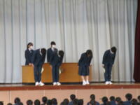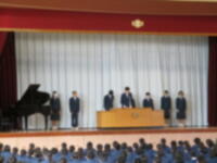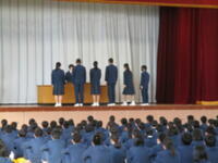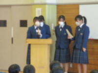 3/11(月)生徒会朝礼で一週間が始まりました。生徒会役員で進行していきます。各委員長の発表も堂々としています。皆へ協力を求める姿勢が伝わってきます。