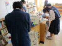 1/25(木)昼休みの図書室です。たくさんの生徒が利用しています。図書委員の生徒が貸出し作業をしていて、今日は特に忙しい!と話していました。大盛況!