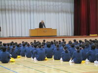 昼頃から雪の予報なので、ひんやりとした朝ですが、生徒皆、きちっとした態度で校長先生のお話を聞いていました。