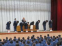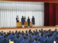 2/19(月)生徒会朝礼で表彰がありました。人権作文・吹奏楽部です。おめでとうございます!
